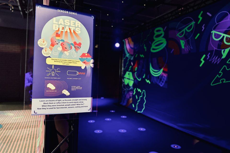 怀特最喜欢的项目之一是“The Sensor Sonic”,这是一个黑暗通道,布置了看不见的激光,当身体穿过时会触发不同声音。